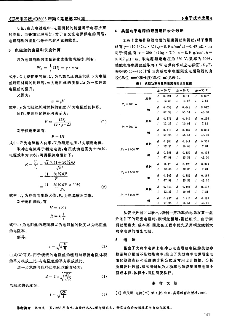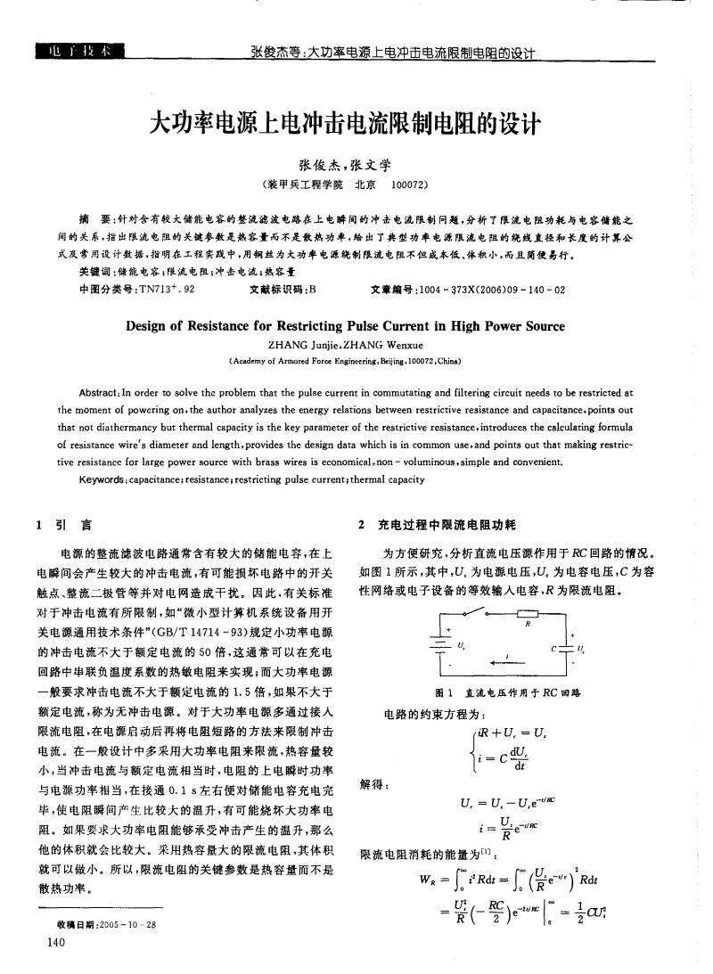 大功率電源上電沖擊電流限制電陽的設(shè)計(jì)
