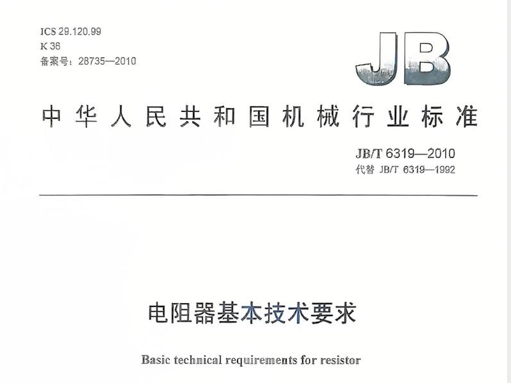 【國家標準】JBT 6319-2010 電阻器 基本技術要求